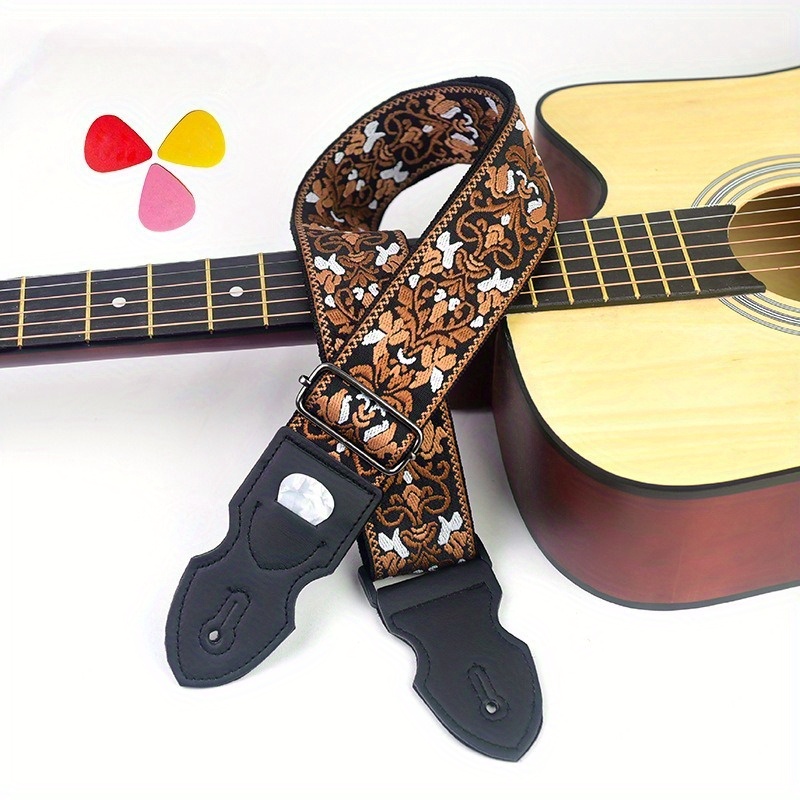 TEMU 자수 두꺼운 기타 스트랩 어쿠스틱 일렉트릭 기타 스트랩 우쿨렐레 클래식 스트랩
