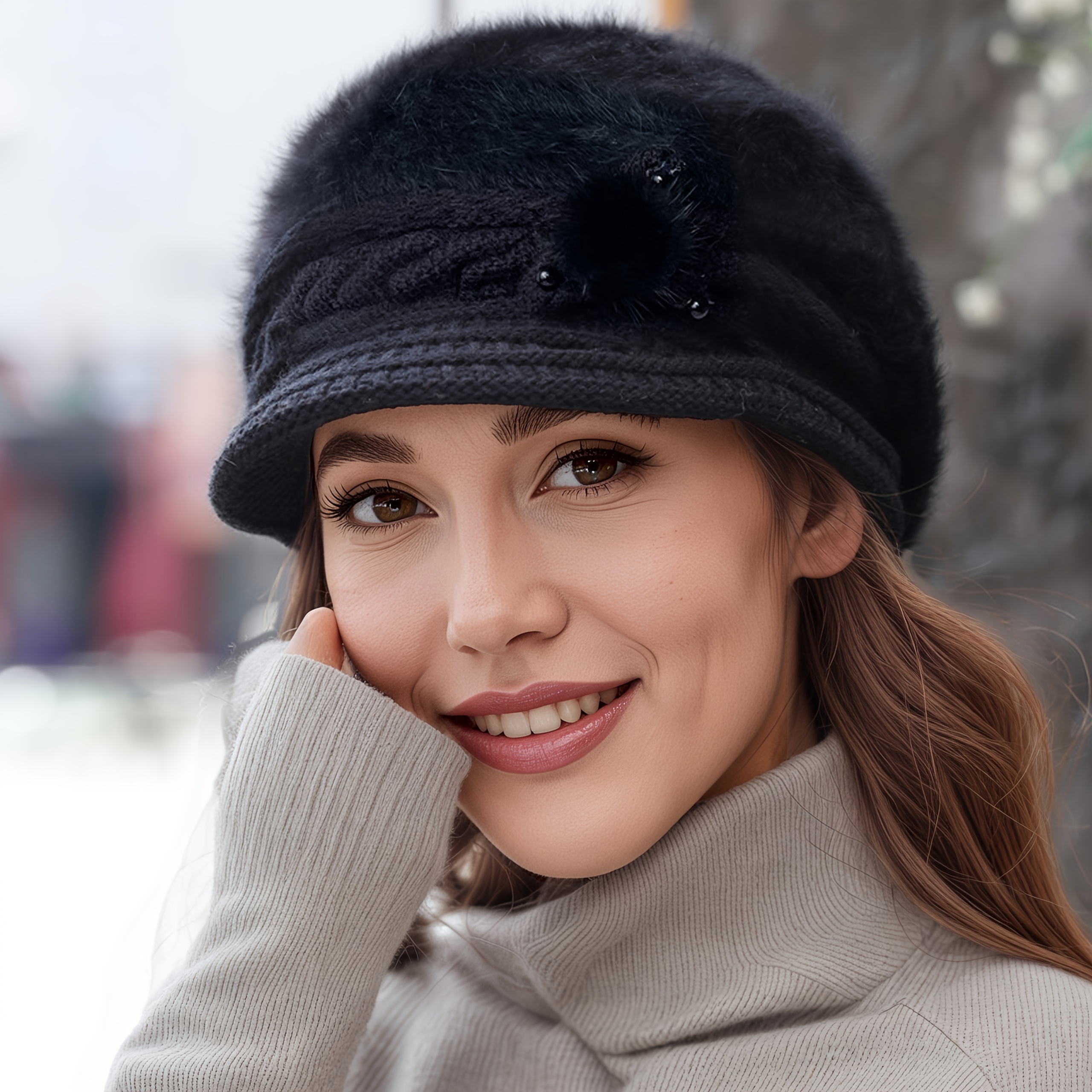 TEMU 여성용 코지 베레모 - 따뜻하고 신축성 좋은 아크릴 겨울 모자, 귀마개 포함, 스키 및 야외 모임에 완벽