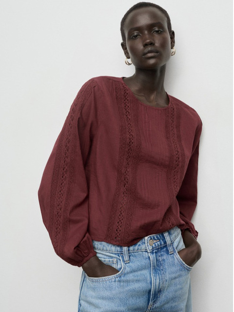 [망고] MANGO WOMAN 블라우스 PEONY Dark Red 17027806