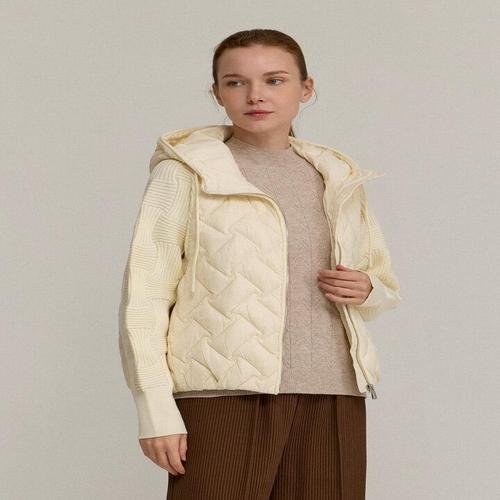 [플리츠미][플리츠미] 니트 슬리브 퀼팅 후드 다운 자켓_EDJKW125059
