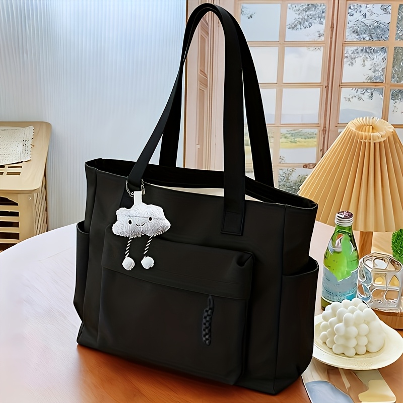 TEMU 여성용 대용량 토트백 - 태블릿 & 책 수납 가능, 크로스바디/숄더/핸드헬드 핸드백, 참 장식, 나일론 (유럽 특별 라인) 엄마 가방, 데일리 출근용 - 태블릿 수납, 지퍼 클로저 선물용