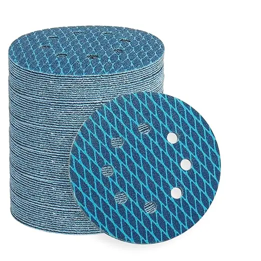 접착식 뒷면이 있는 5인치 8홀 다이아몬드 모양 샌딩 디스크 10개, 그릿 40/60/80/100/120/150/180/240/320으로 제공, 궤도 및 무작위 궤도 샌더, 목공, 금속 가공, 막힘 방지 방진 샌드페이퍼 디스크에 적합