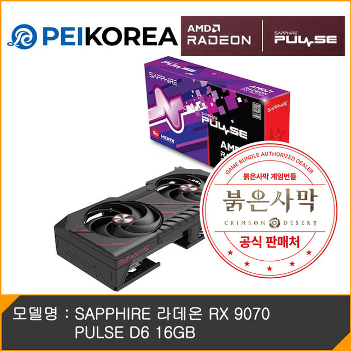 이엠텍 [붉은사막 게임코드 증정][PEIKOREA] SAPPHIRE 라데온 RX 9070 PULSE D6 16GB
