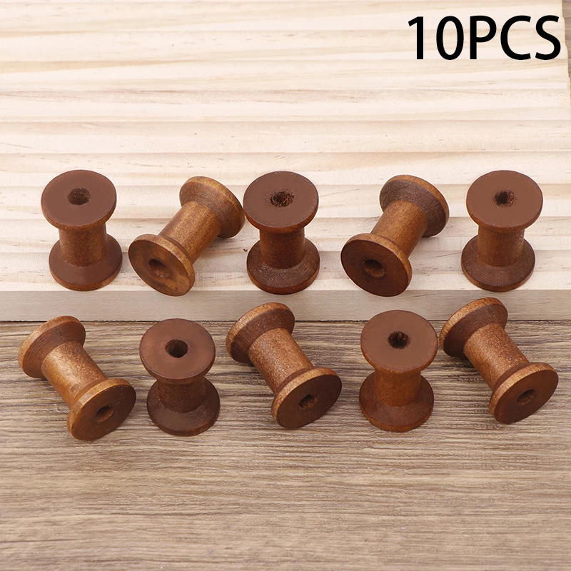 10Pc 빈티지 나무 스풀 DIY 릴 주최자 바느질 리본 꼬기 나무 공예 도구 스레드 와이어 스풀 바느질 용품