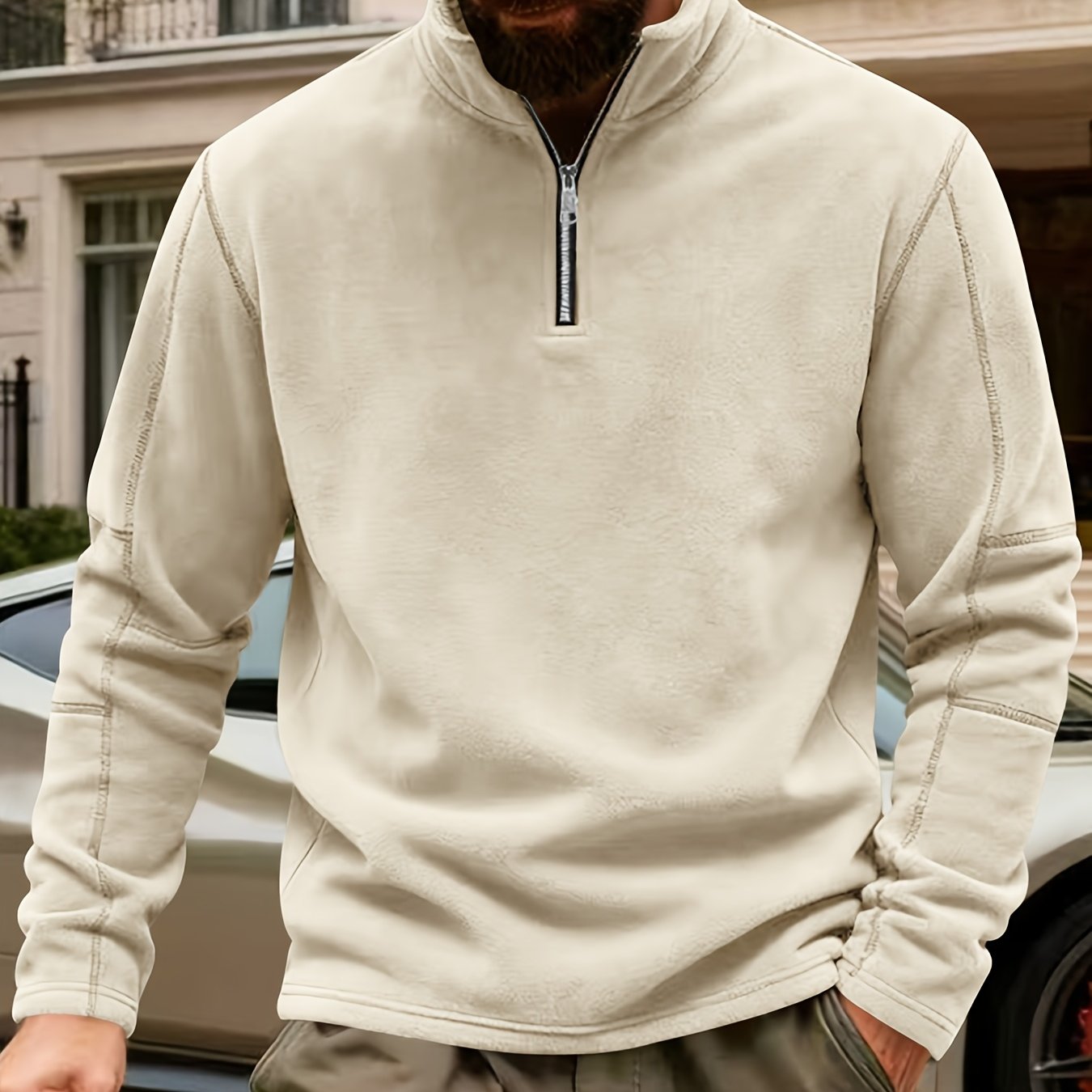 TEMU 남성용 솔리드 컬러 하프 지퍼 스탠드 칼라 스웨트셔츠, 캐주얼 편안한 긴팔 탑, 겨울과 가을용