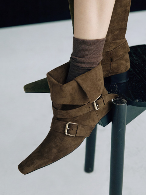 [정상가:136,000원] KM107-P 핸드메이드 스웨이드 스트랩 미들부츠 I 2Colors