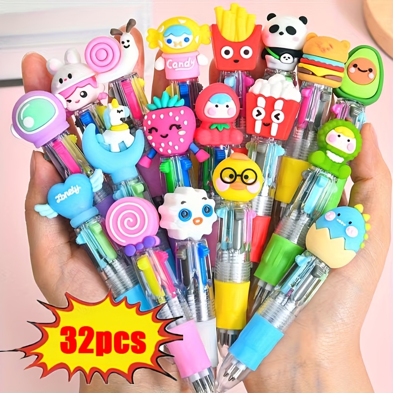 TEMU 16/32개 4-in-1 재미있는 펜, 4색 잉크 볼펜 세트, 파티 선물, 교실 보상, 생일 선물에 이상적 – 귀여운 디자인의 컬러풀 문구류, 할로윈, 크리스마스, 추수감사절을 위한 완벽한 학교 및 사무용품