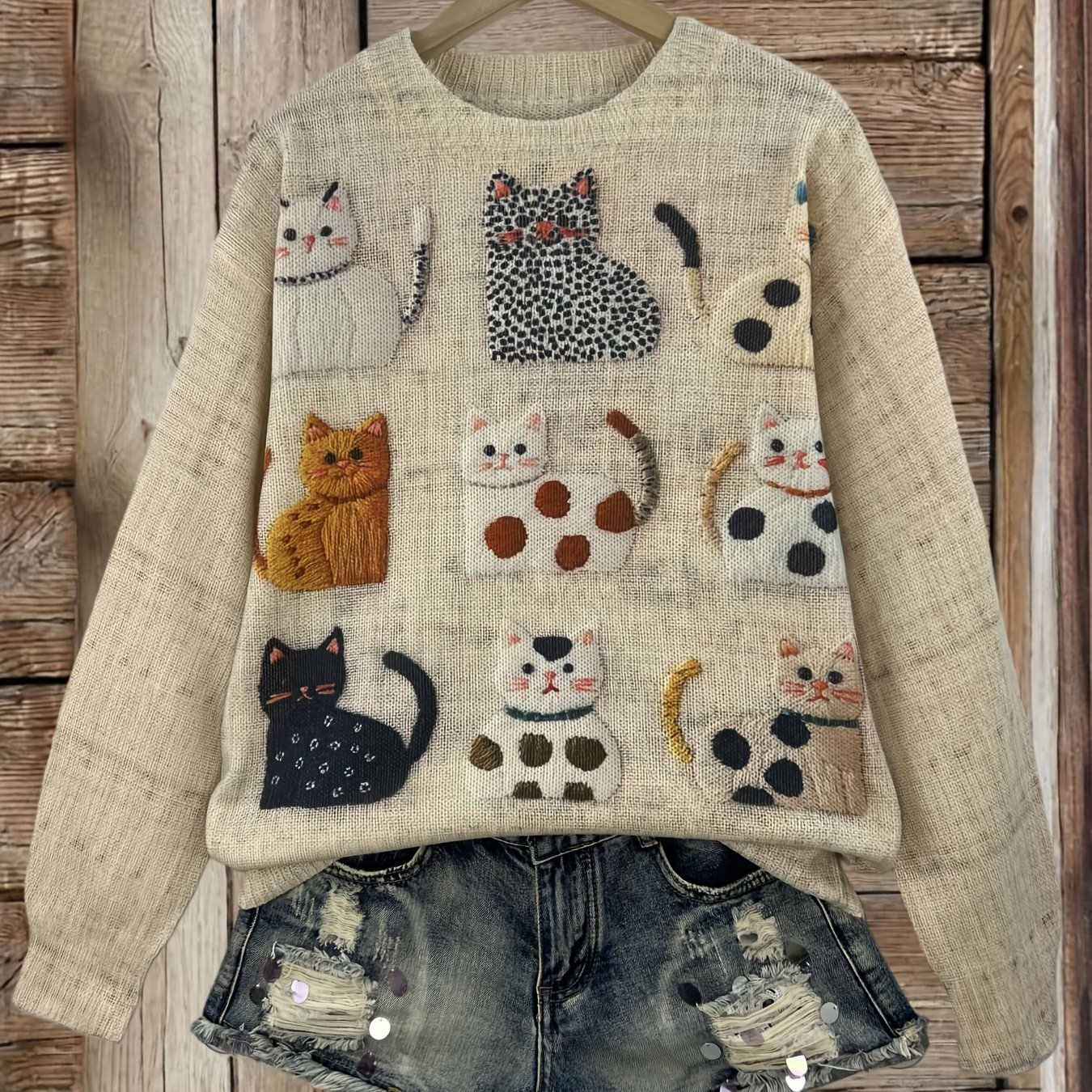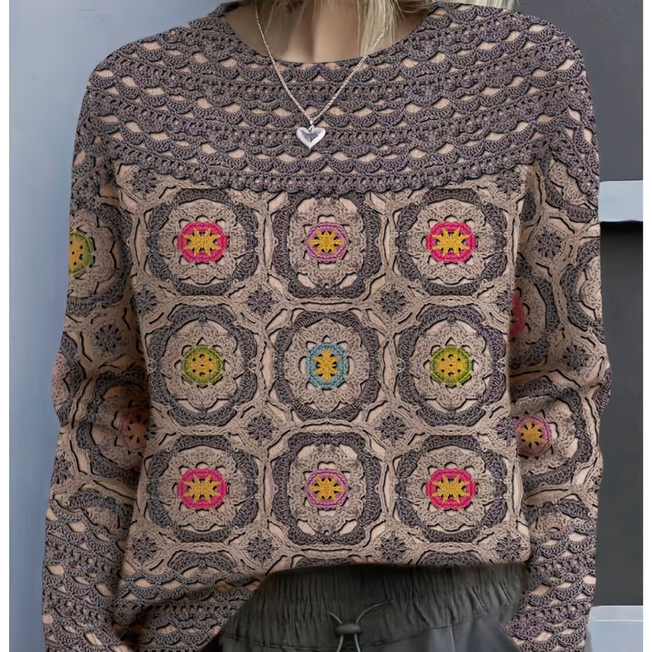 TEMU 여성용 프린트 스웨터 - 우아한 라운드넥 풀오버, 가을/겨울 캐주얼 웨어, 편안한 레이어링 아이템, 패셔너블 탑 [릴랙스드 핏] [사이즈 차이 2-3cm] [프린트 디자인 - 텍스처 없음]