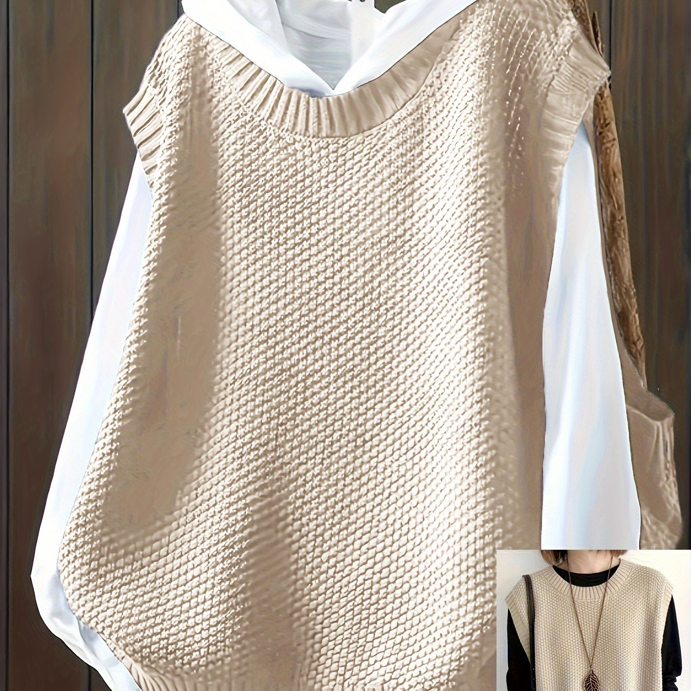 TEMU 플러스 사이즈, 오버사이즈 민소매 스웨터 - 솔리드 컬러 라운드넥 블라우스, 세탁기 사용 가능 봄/가을 레이어링 아이템|민소매