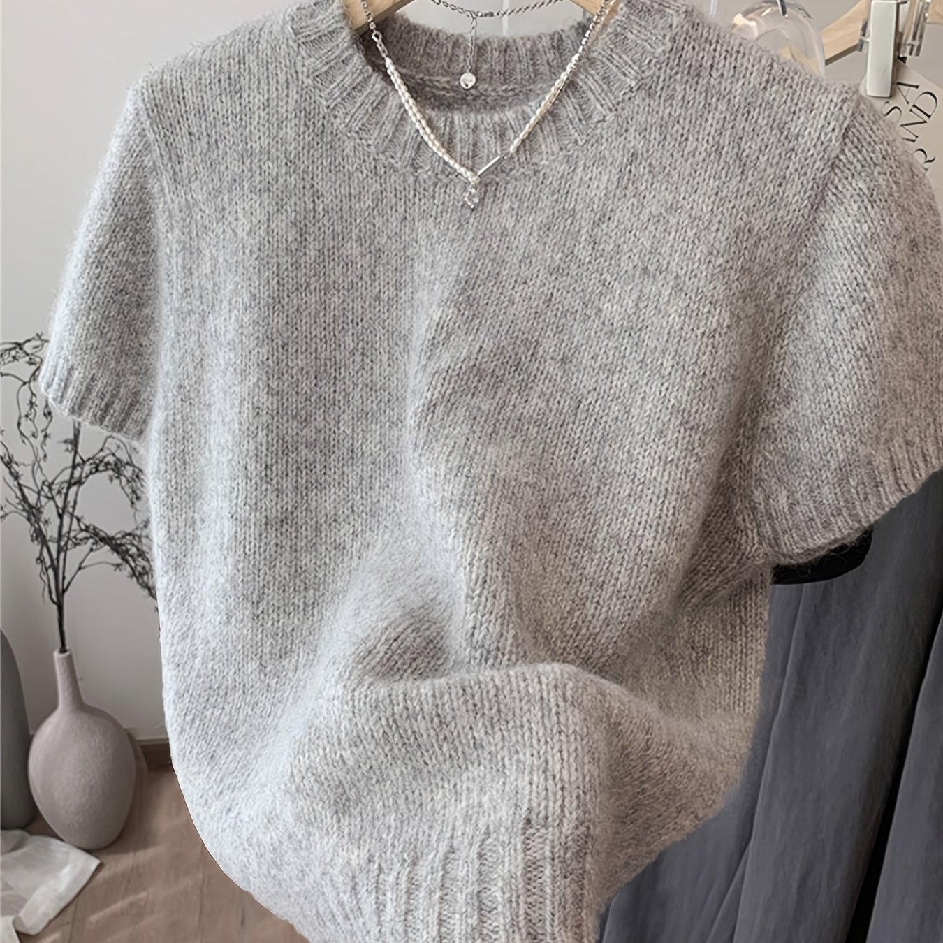 TEMU ELEGANTSUT 여성용 우아한 솔리드 컬러 반팔 스웨터 - 라운드넥 블라우스, 미디엄 스트레치 겨울 탑, 가을/겨울용 솔리드 컬러 반팔 스웨터 블라우스, 캐주얼 & 프로페셔널 웨어, 손세탁 가능 (컬러)