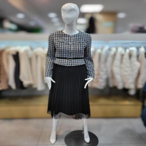 SI 세이브존04 니트 블록 체크 스팽클 튤 원피스 SJO1129050BK