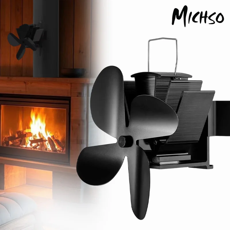MICHSO 자석식 스토브 팬, 굴뚝 파이프용 열 구동 벽난로 팬, 장작 난로 에코 팬, 가정용 효율적인 열 분배