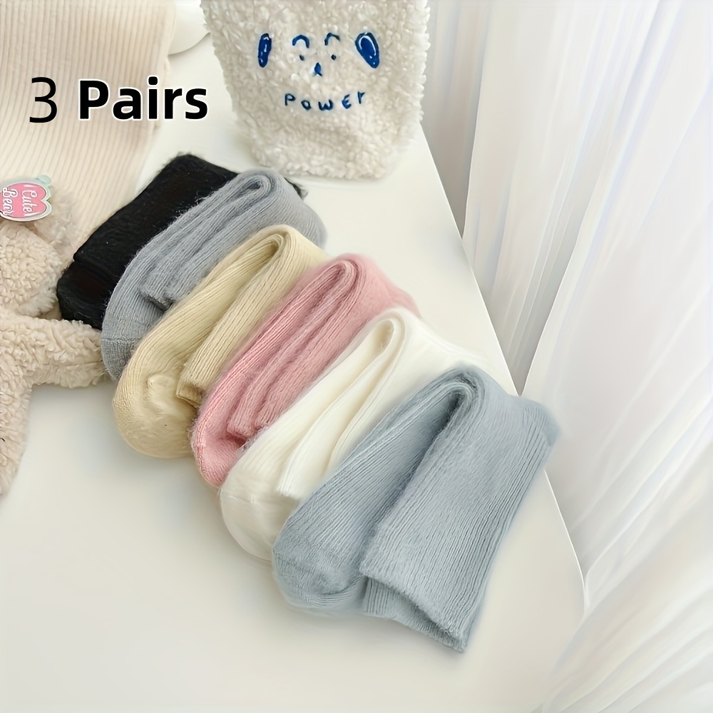 TEMU 6개입 3켤레 양면 호주 중목 여성 양말, 단색, 두껍고 따뜻한 가을 겨울용, 일본식 수면 및 산후 양말로도 사용 가능, 겨울 양말,단색 양말,두꺼운 원단,손세탁만 가능,다용도 양말,라운지 양말,겨울 필수품