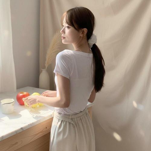 TEMU 여성 여름 신상 단색 원넥 반팔 티셔츠 탑