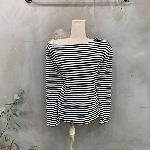 포하 스트라이프 언발 오프숄더넥 긴팔 티셔츠 2color C