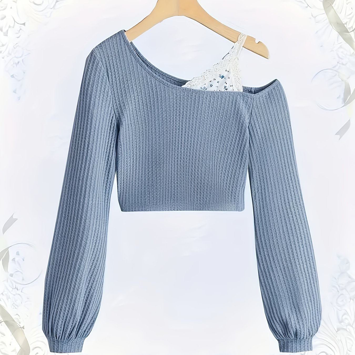 TEMU 우아한 레이스 트리밍 오프숄더 티셔츠