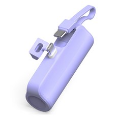 제이원 2in1 도킹형 일체형 케이블 미니 5000mAh 보조배터리, HA-ST5000-2W(C타입 커텍터+C타입 케이블), 퍼플