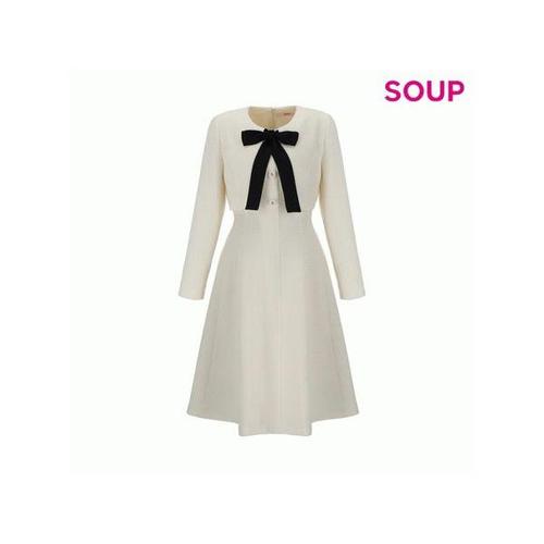 [숲]SOUP 플레어 배색 리본 타이 원피스 SB2OPM3