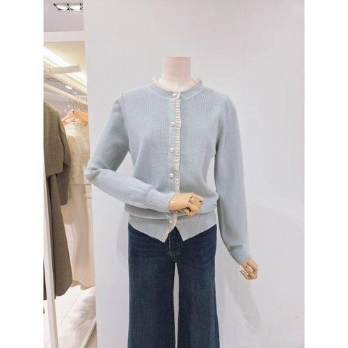 갤러리아_[SOUP] 래이스 배색 진주 버튼 니트 가디건 SBAGD84