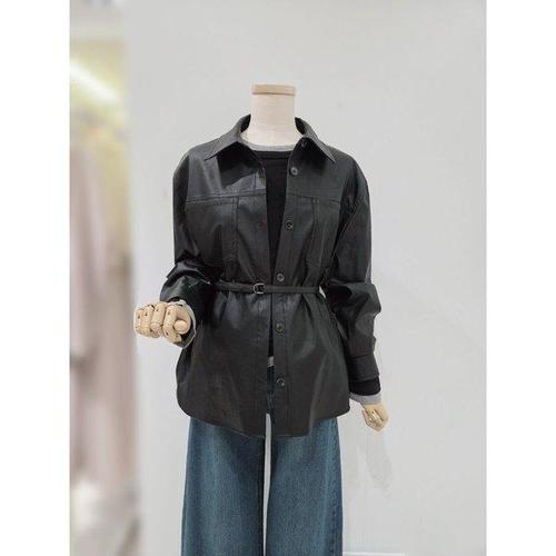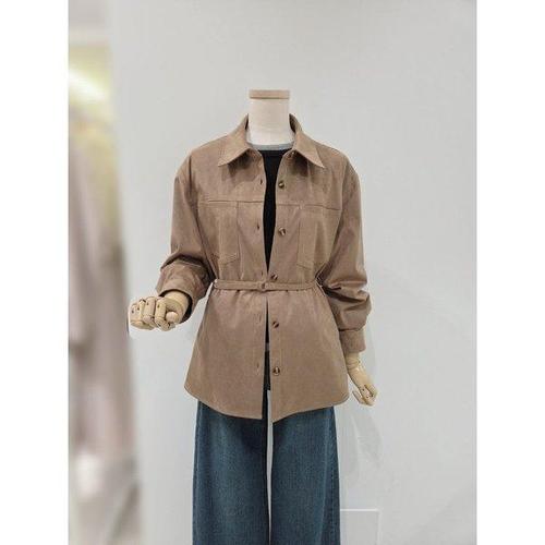 숲 벨티드 셔츠형 레더 여성자켓 SCRLE31