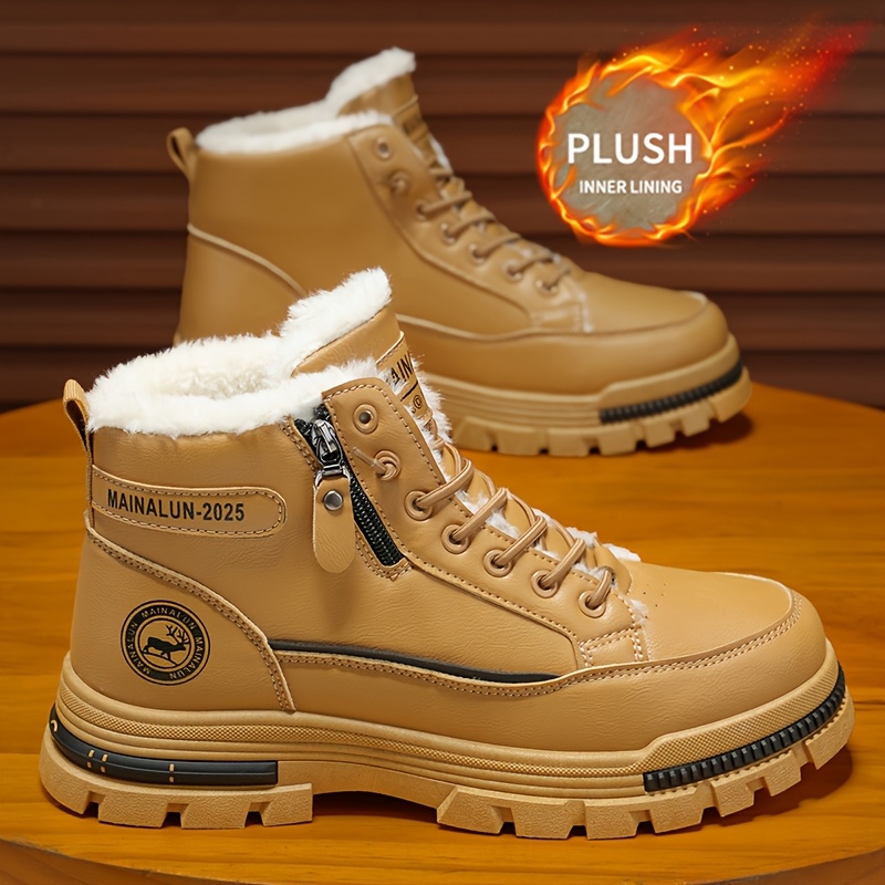 TEMU MAINALUN 남성용 헤비 벨벳 안감 겨울 부츠 - 레이스업 라운드 토, 빈티지 아이스 앤 스노우 부츠, 스케이트 느낌의 그립감, 가을/겨울용 따뜻한 캐주얼 신발, 스노우 부츠, 스노우 스포츠 신발.