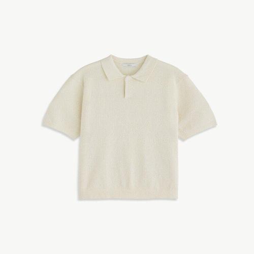[에스티코]버티컬 조직 카라 반팔 티셔츠_아이보리 (세미오버핏)_STSXB38NSI
