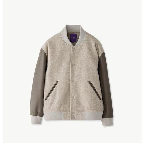 [STCO]레더 소매 바시티 점퍼_ 베이지 (세미오버핏)_BP