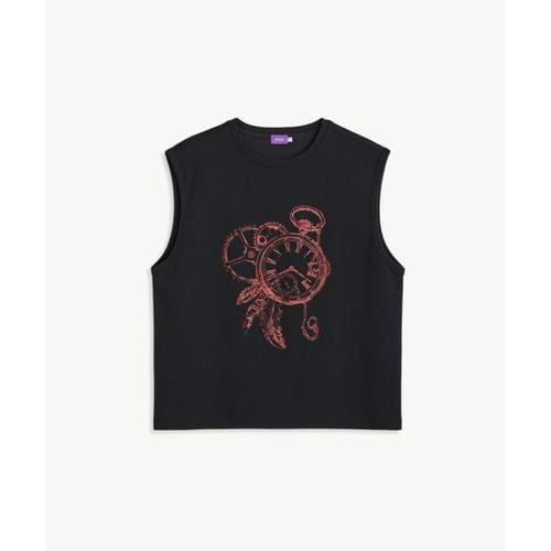[에스티코]프린트 슬리브리스 티셔츠_블랙 (오버핏)_STSXB74OPB