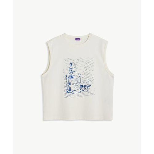 [에스티코]프린트 슬리브리스 티셔츠_아이보리 (오버핏)_STSXB73OPI