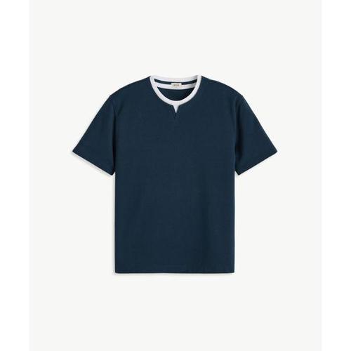 [에스티코]레이어드 슬릿넥 반팔 티셔츠_블루 (세미오버핏)_STSXB03NSL