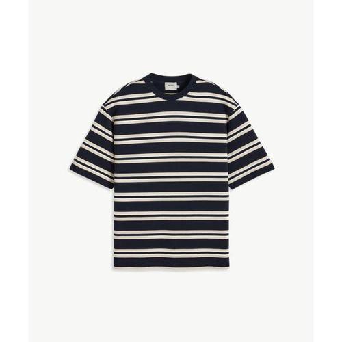 [에스티코]베이직 스트라이프 반팔 티셔츠_네이비 (오버핏)_STSXB52OTN