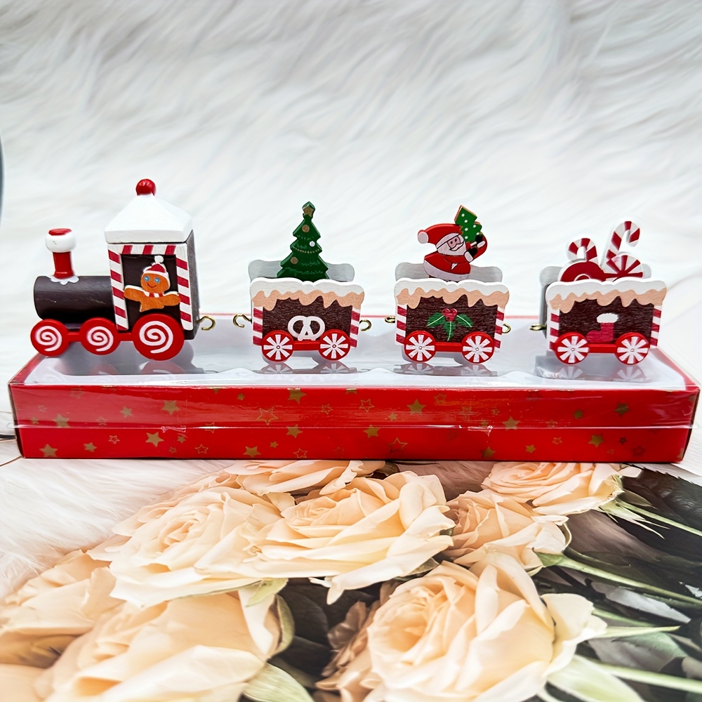 TEMU 1개 목재 크리스마스 기차 장식 - 산타, , 축제용 차량이 있는 클래식 테이블탑 장식 - 집이나 사무실을 위한 완벽한 크리스마스 선물, 크리스마스 장식