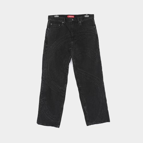 갤러리아_슈프림 S로고 루즈핏 워시드 데님 남성 팬츠 SS24P37 WASHD BLK