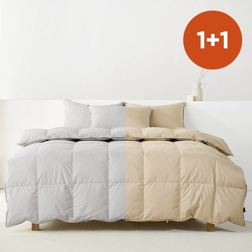 [퀸2장] 라뽐므 한겨울용 오폴레 코튼 구스이불 Q (연그레이1+오트밀베이지1)