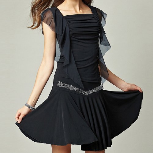 TEMU 카니발과 음악 축제용 여성 댄스 스커트, 패션 높은 허리 노트 라틴 탱고 댄스 볼룸 스커트, 검은색 태슬 트림 힙 랩 숏 스커트