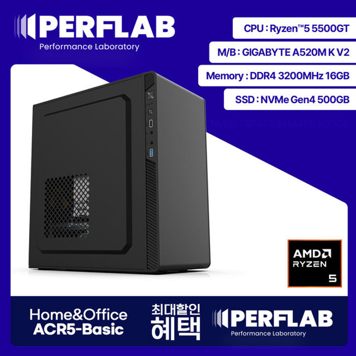 PERFLAB 라이젠5 5500GT 16GB 500GB 사무용 컴퓨터 내장 그래픽 데스크탑 조립 PC