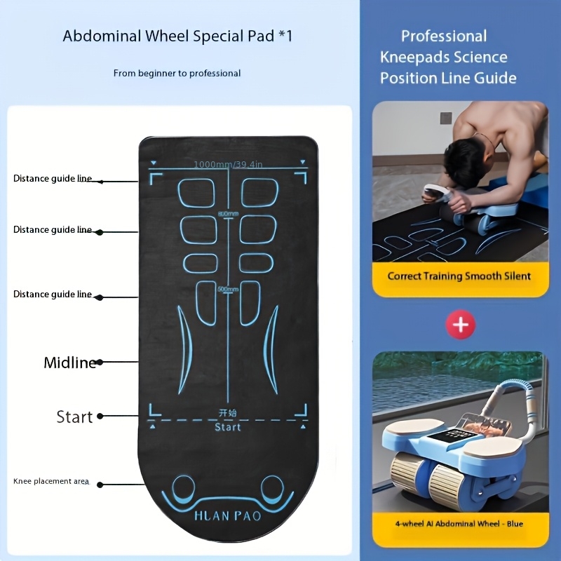 TEMU 다크 블루 PVC 소재의 체중계와 미끄럼 방지 매트가 포함된 복근 운동용 휠, 거실, 헬스장, 발코니 등에서 사용 가능, 접이식 및 세척이 쉬움