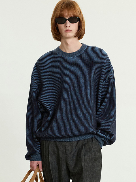 [티엔지티] 콘트라스트 리브드 니트 [빈티지네이비] TNSW5F113B2
