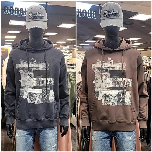 [버커루]남성 3단쭈리 그래픽 후두 티셔츠B243TS300PP _US