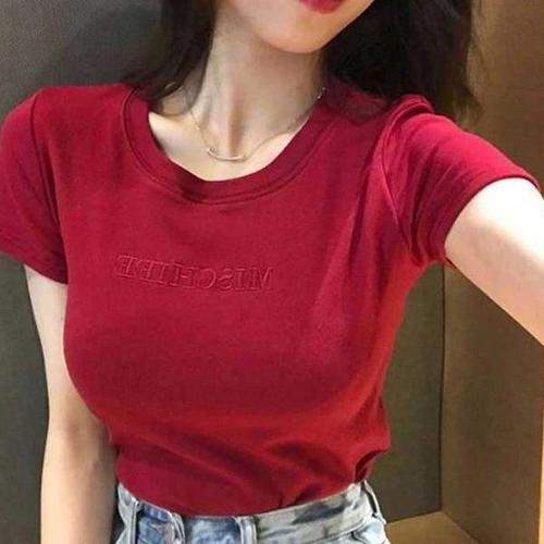 [다잇템_패션]여자 필기체 U넥 반소매 클래식 크로쉐 티셔츠