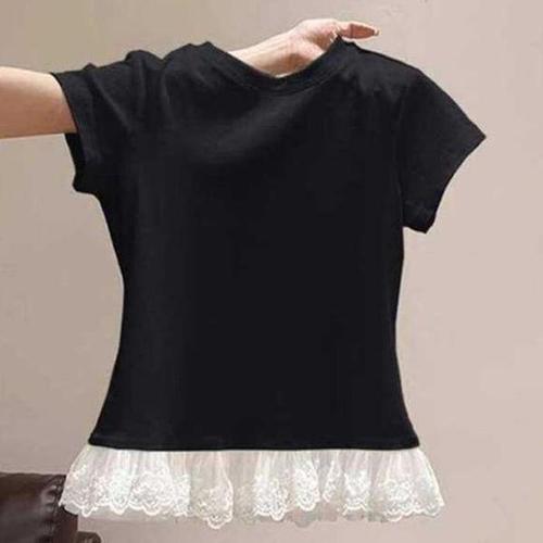 [다잇템_패션]여성 U넥 레이스 코디 무지컬러 반팔티