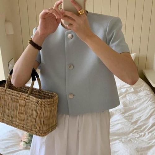 [다잇템][다잇템] 여성 동글단추 반소매 U넥 세미크롭 베이직 자켓_22894535_588872