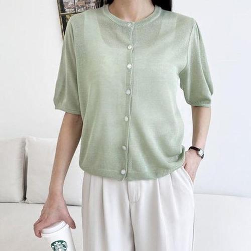 [다잇템][다잇템] 여자 U넥 벌룬소매 클래식 반소매 무지컬러 가디건_22888081_588872