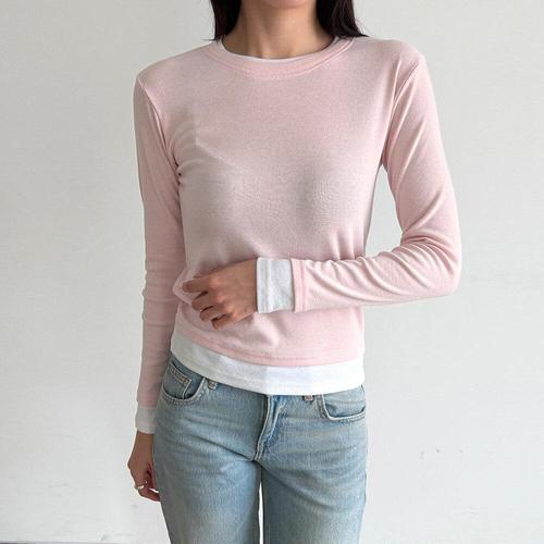 [다잇템]여자 코디 콘트라스트 U넥 두겹티셔츠 티셔츠