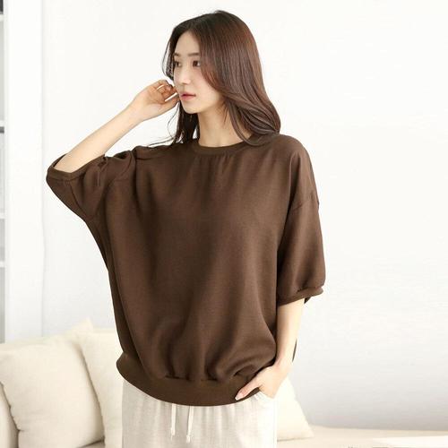 [다잇템]여자 플레인 일상룩 U넥 반소매티 티셔츠
