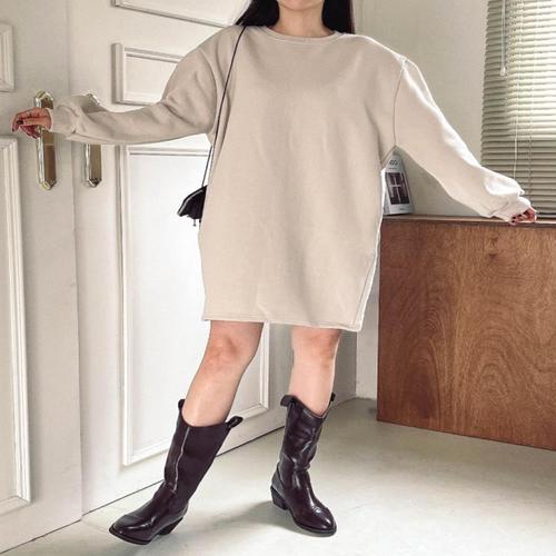 [다잇템][클리어런스]가을겨울 U넥 무지면 보온 원피스_5
