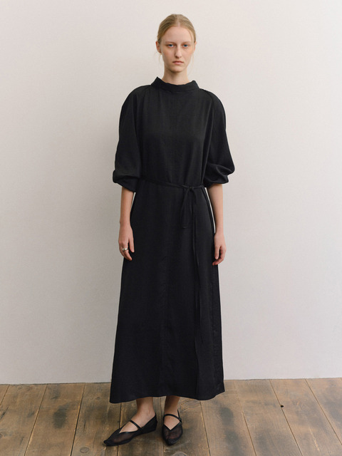 [오브베이지] HIGH NECK TIE LONG OPS_BLACK