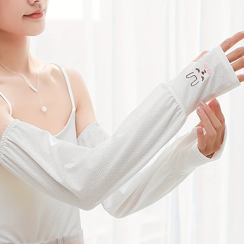TEMU 여성용 패셔너블한 여름 아이스(비스코스 섬유) 소매 세트, 귀여운 토끼 머리 디자인과 아이스(비스코스 섬유) 원단으로 제작되어 야외 활동 및 사이클링, 운전에 이상적인 동반자입니다