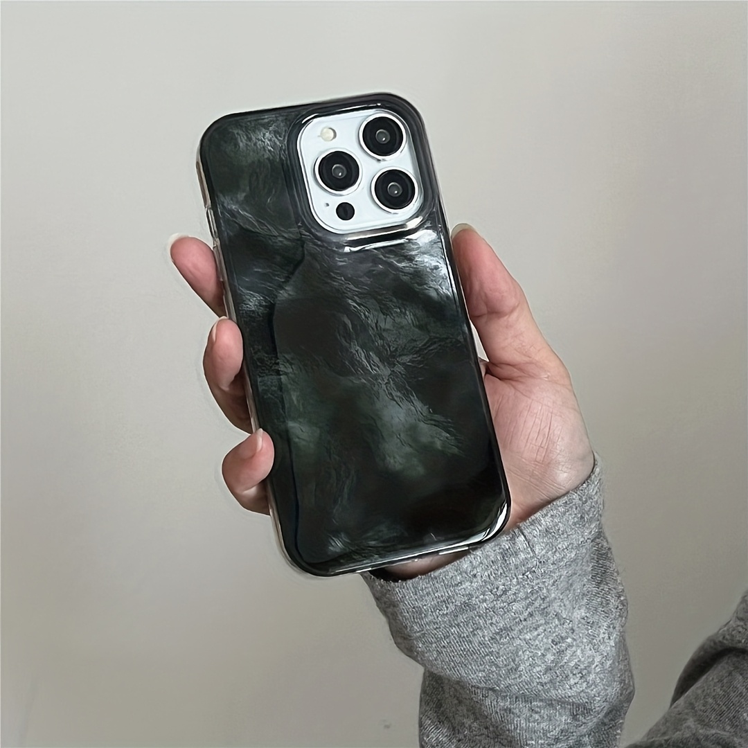 TEMU 스모키 블랙, 다크 그린, 주름 금속 포일 그라데이션 디자인의 휴대폰 케이스. iPhone 16, 11, 13, 15, 15 Plus, 15 Pro, 15 Pro Max, 12, 14 Pro Max, XS, XR, 11 Pro Max, 12 Pro, 12 Pro Max, 13 Pro, 13 Pro Max, 14 Pro 호환