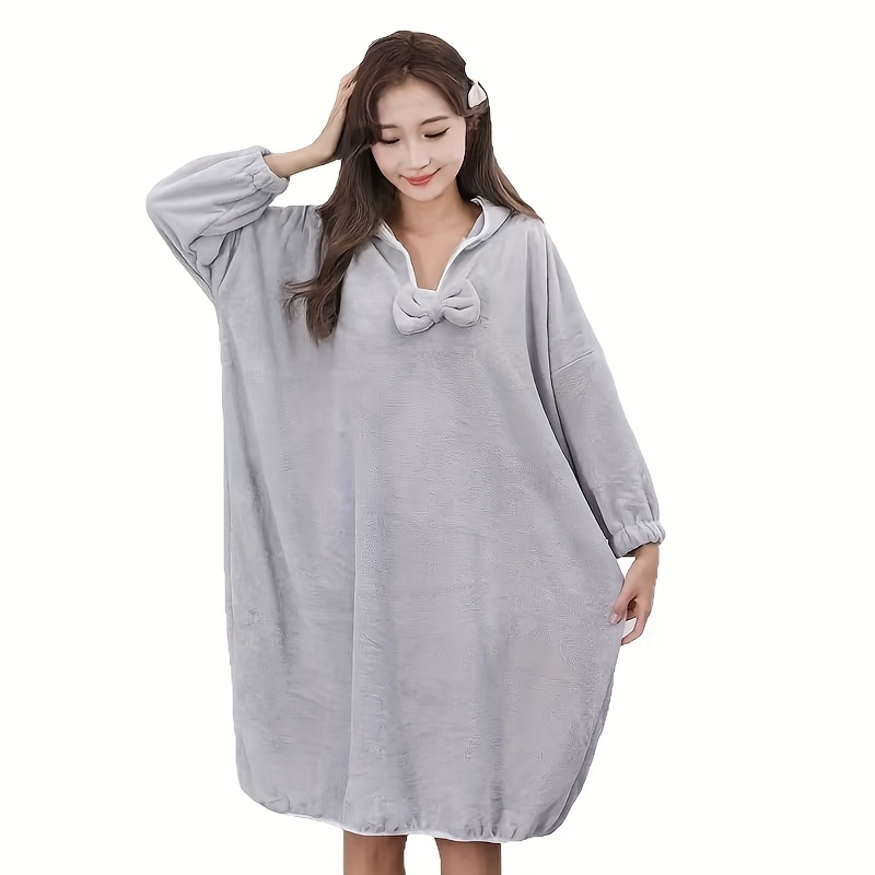 TEMU 가을, 겨울용 긴팔 목욕 가운 - 입고 사용 가능한 타월 - 편안한 휴식에 적합 - 초극세사 흡수성 코랄 플리스 소재 - 귀여운 리본 디자인 - 넉넉한 커프스 및 깔끔한 밑단 - 스파, 수영장, 헬스장에 이상적